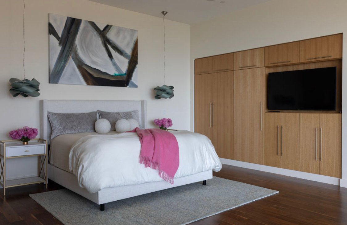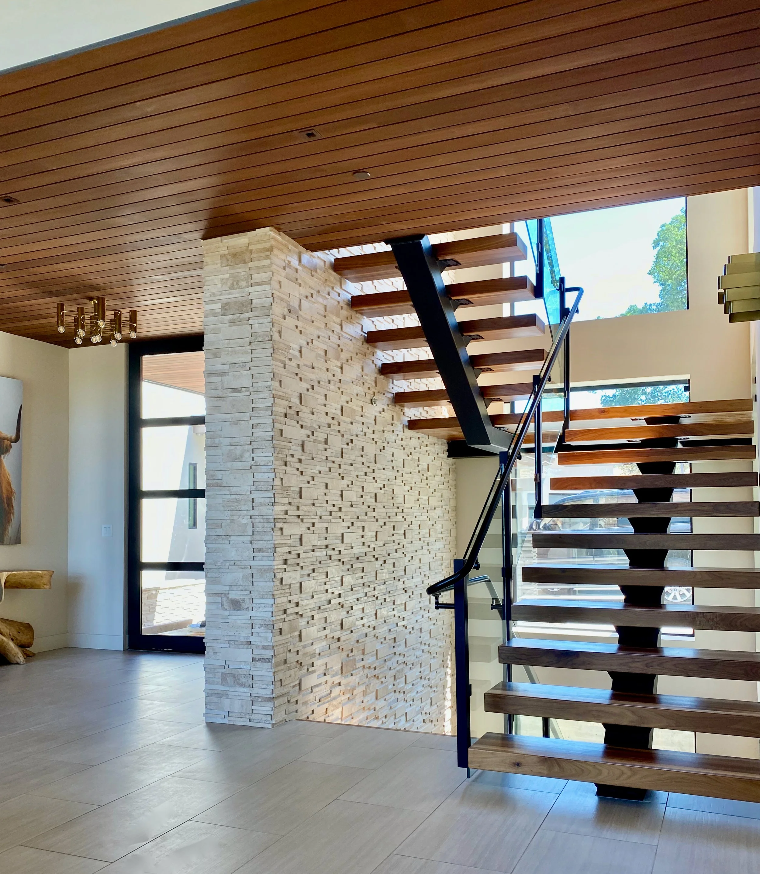 Earthy wood grains and gold metals are layered in for warmth and an organic touch. Beautiful stone and tile textures add more depth and visual interest. Then color is expertly threaded throughout the home in art and accessories, bringing this modern beauty to life.